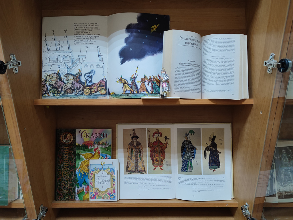 Последняя сказка А. С. Пушкина — «Сказка о золотом петушке» — издана в апреле 1835 года. Меньше всех других она похожа на русскую народную сказку. Эту историю считают одним из самых загадочных произведений Пушкина и трактуют ее смысл по-разному. На выставке представлено великолепное издание сказки в иллюстрациях И. Я Билибина, современные ее издания, а также любопытные литературоведческие статьи.