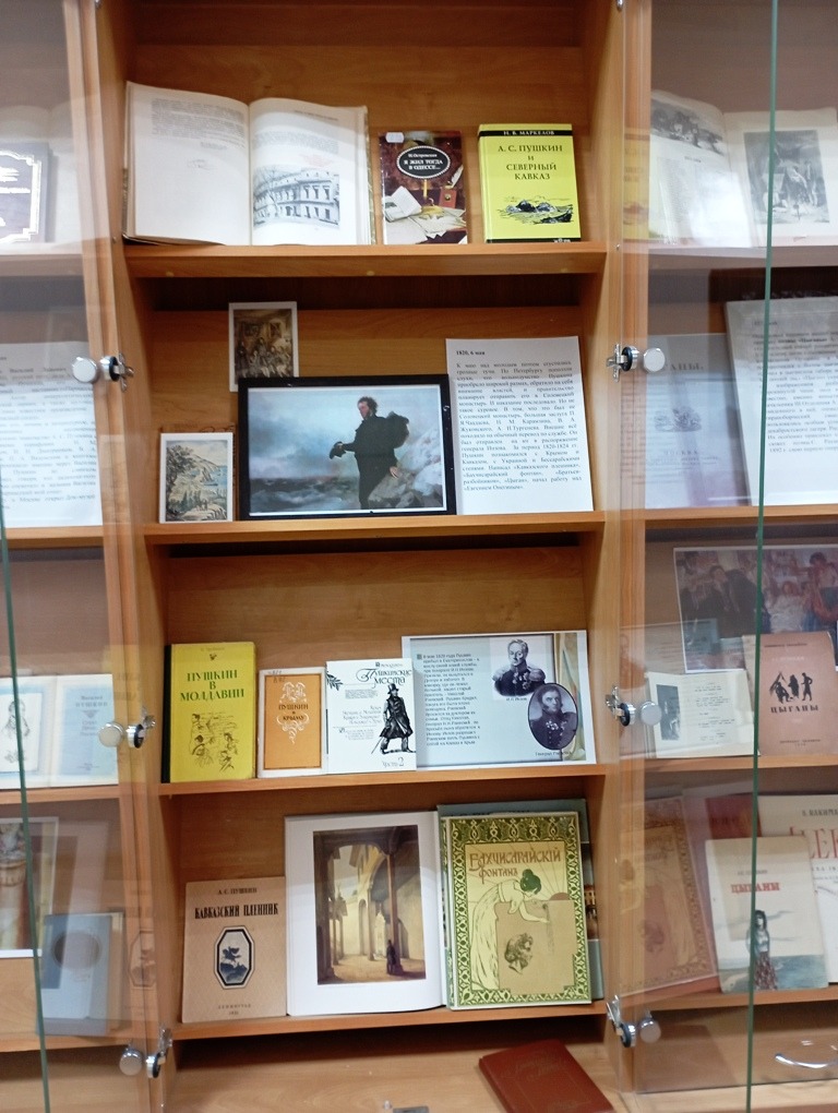 Вторую книжно-иллюстративную выставку из цикла «Пушкинский год», посвященного 225-летию со дня рождения поэта, открывает стенд, посвященный первой в русской литературе романтической поэме «Кавказский пленник». А. С. Пушкин окончил ее в феврале 1821 года, находясь на юге. В поэме говорится о Кавказской войне, пленном русском офицере, его страданиях и спасении благодаря жертвенной любви юной черкешенки. Успех второй поэмы Пушкина был еще более громким, чем успех «Руслана и Людмилы». Русское общество впервые познакомилось с Кавказом и его жителями. В январе 1823 года в Петербурге состоялась премьера одноименного балета, поставленного Дидло. На нашем стенде можно увидеть изображение первого издания поэмы 1822 года, интересного тем, что в нем впервые опубликован портрет автора — молодого Александра Сергеевича, выполненный Егором Гейтманом.